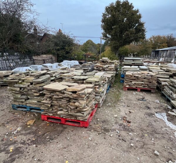 A nice batch of reclaimed weathered crazy York stone paving. Size : Random sizes Cost : £35 per metre square…