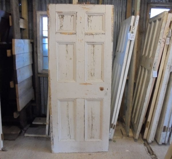 A reclaimed 6 panel door, with beading on both sides. Size: 76 1/4″ x 29 11/16″ x 1 5/16″ (1938mm…