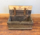 Here we have an antique wooden goods box, it is beautifully made and has been refurbished by our in-house carpenter. It’s in great condition and has bags of character! The front board of the lid has been replaced and restored with a relic peice of wood. As you can see it has been well matched…
