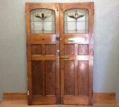 Here we have a spectacular set of stained glass oak double front doors, they have the most attractive natural grain and have developed a golden finish on the front side of the doors. On the back the finish is darker and the stained glass is in good condition apart from a minor crack (see images).
