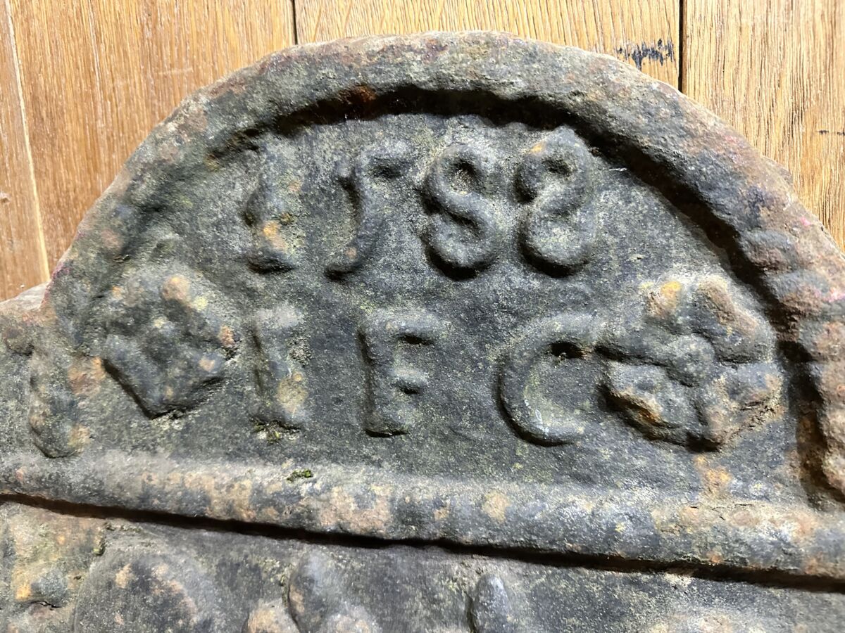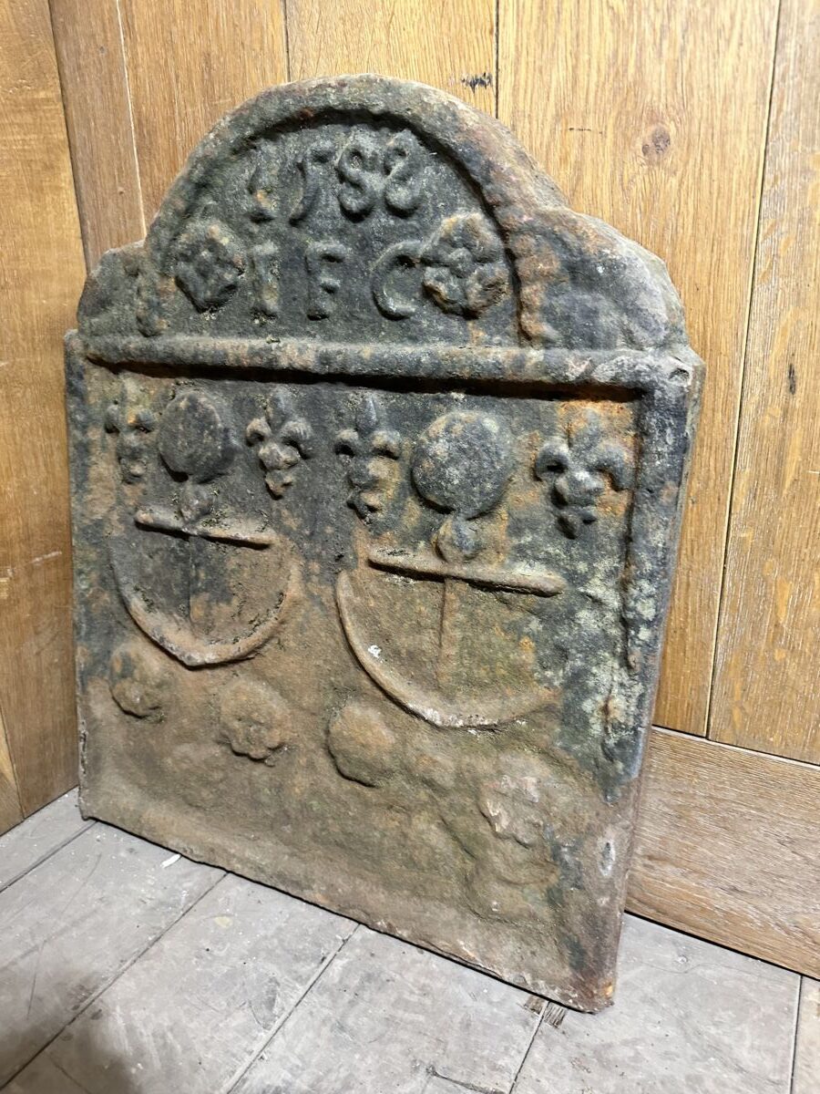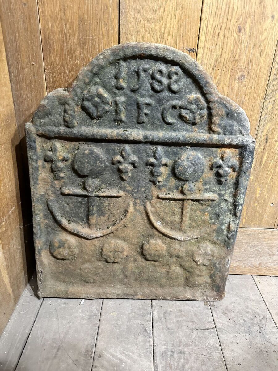 Here we have this Fantastic well aged fire back available on display in our showroom at Authentic Reclamation. This item shows a date 1582 and 2 anchors on the front If this is something that interests you, we have many more in different shapes and sizes.