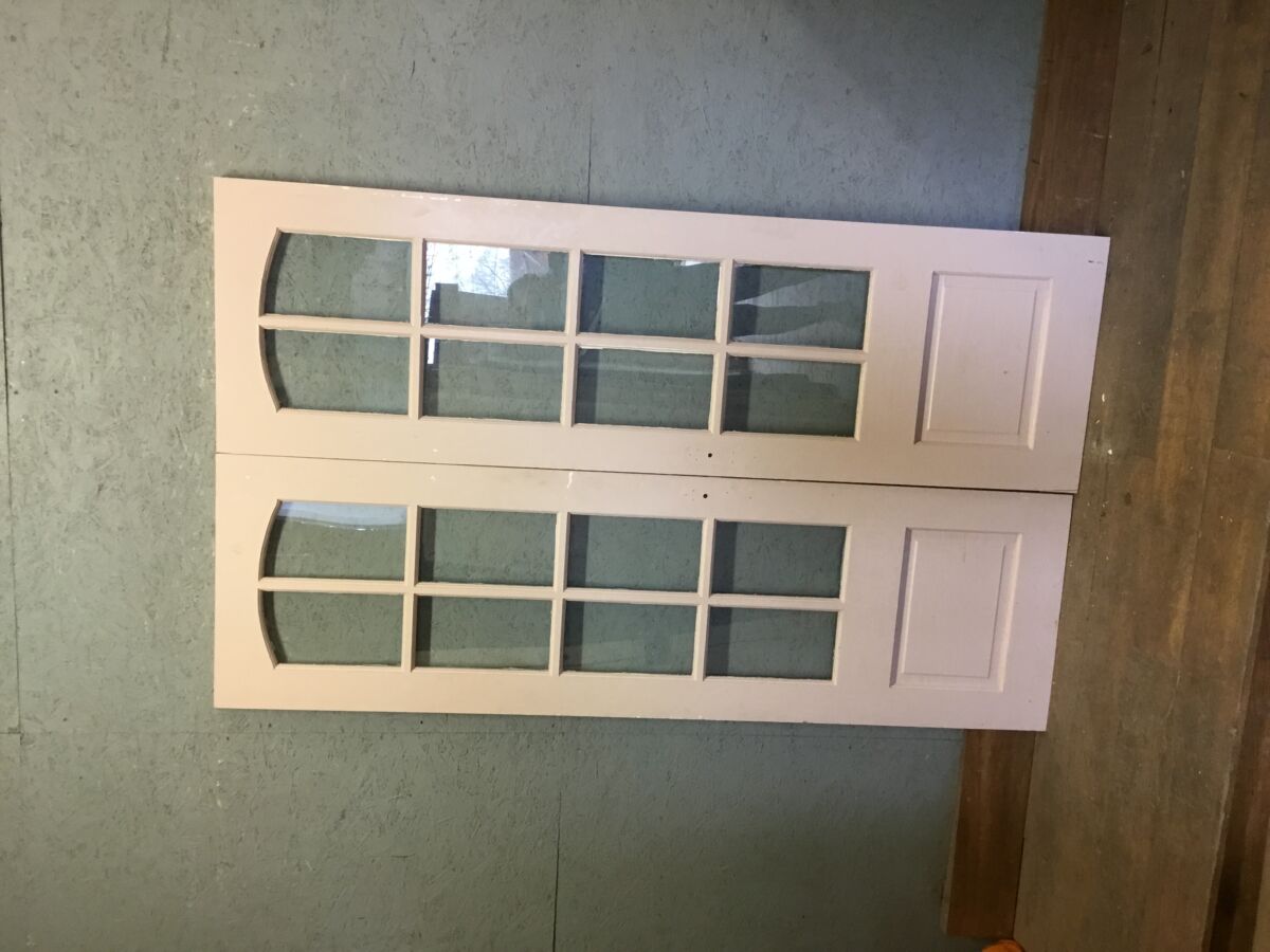 Here we have a Grey & Pink Double Door is in stock and on display in our door showroom at Authentic Reclamation. We also have a wide range of doors of all different shapes and styles here within our yard.
