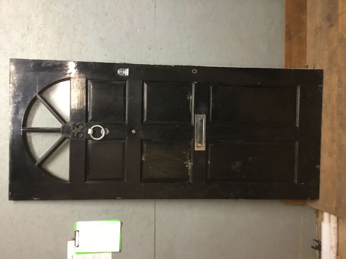 Here we have a Reclaimed Half Moon Glazed Black Front Door in stock and on display in our door showroom at Authentic Reclamation. We also have a wide range of doors of all different shapes and styles here within our yard.
