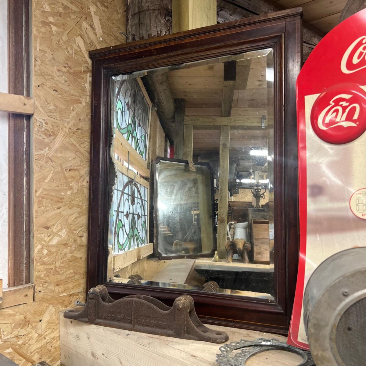 Here we have this Handsome Bevelled Mirror in stock and on display in our showroom area here at Authentic Reclamation. This handsome bevelled mirror is in good condition with minor age-related marks to the frame and some spotting on the glass, which can be seen in the images. The deep frame and original glass make this handsome bevelled mirror a striking piece for period interiors, whether hung above a mantelpiece or featured in a hallway. If this handsome bevelled mirror doesn’t interest you, we offer a diverse selection of lighting throughout our showroom which can be viewed online or come in today!