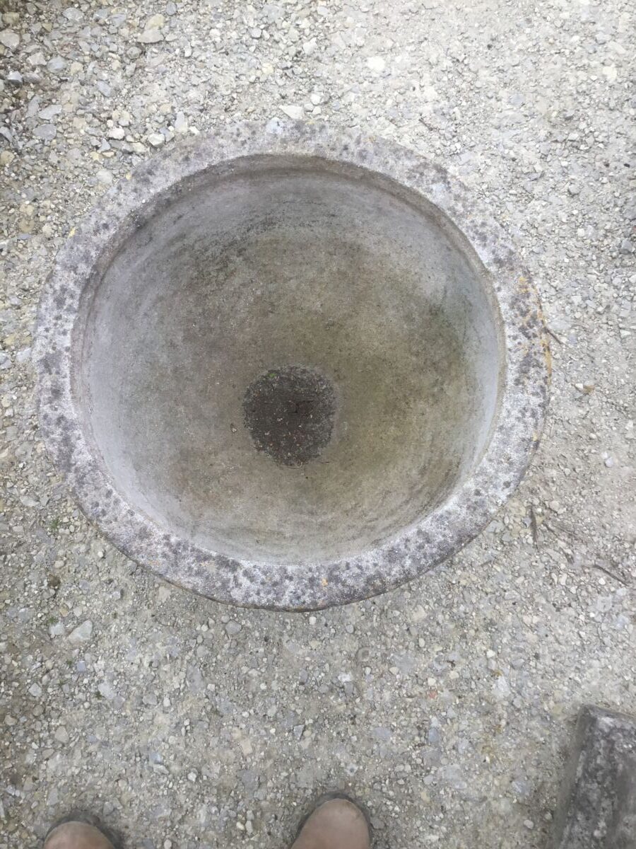 Here we have a Large Urn And Base in stock and available here at our yard at Authentic Reclamation. This Large Urn And Base depicting opening flower.