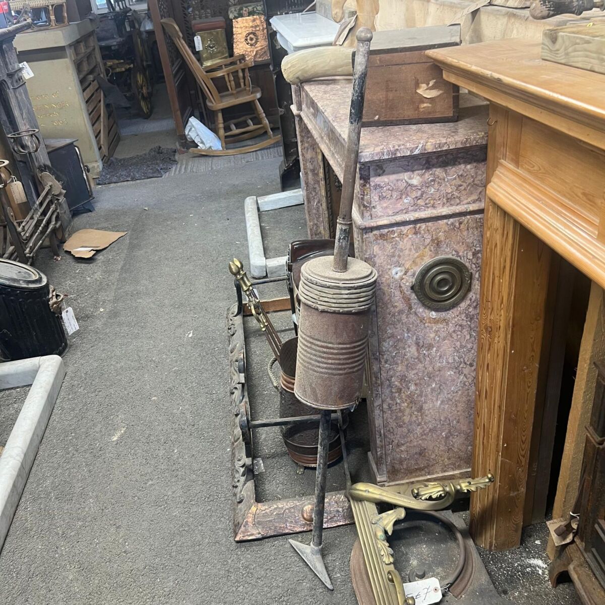 Here we have this Antique Manual Vacuum Cleaner in stock and on display in our showroom area here at Authentic Reclamation. This manual vacuum cleaner is in okay condition with surface wear and age-related marks, which can be seen in the images. Designed with a ribbed cylindrical chamber, tall wooden handle, and iron fittings this manual vacuum cleaner was operated by hand to create suction making it a fascinating glimpse into the ingenuity of household design from the early 20th century. If this manual vacuum cleaner doesn’t interest you, we offer a wide range of antiques throughout our yard which can be viewed online or come in today!