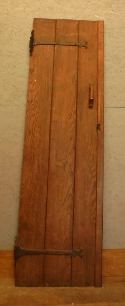 We have just reclaimed this lovely narrow, tall, oak ledge and brace door. This door has been constructed in a very traditional manner and is straight out of manor house or castle! The door has a lock and key.