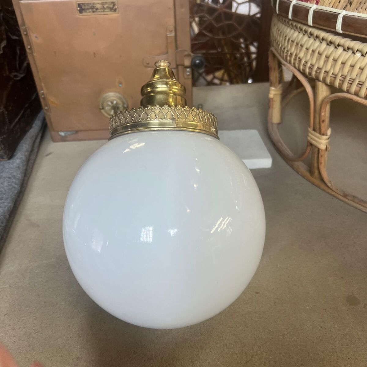 Here we have this Opaline Glass Globe Light in stock and on display in our showroom area here at Authentic Reclamation. This opaline glass globe light is in good condition with light surface wear consistent with age, which can be seen in the images. The milky opaline glass gives a soft, diffused glow when lit which makes this opaline glass globe light ideal for hallways, living rooms or creating ambient lighting in any interior setting. If this opaline glass globe light doesn’t interest you, we offer a wide range of lighting throughout our yard which can be viewed online or come in today!