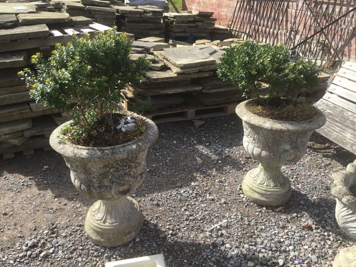 Here we have a Reclaimed Pair of Large Urns in stock and on display in the reclaimed garden features section here at Authentic Reclamation. If this item is of interest to you then please don’t hesitate to get in touch with our yard.