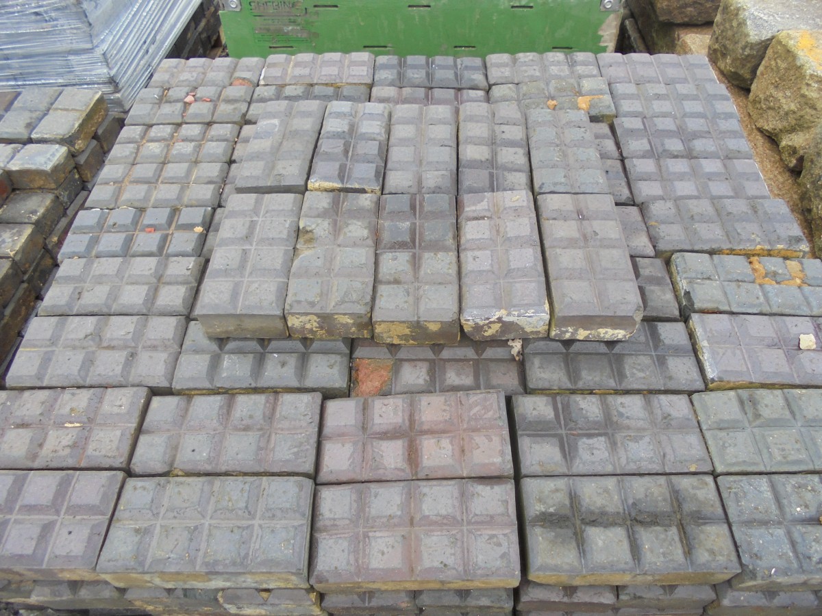 STOCK REF: 146220750A pallet of reclaimed Staffordshire blue stable brick. Also known as 2 x 8 chocolate block.