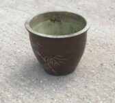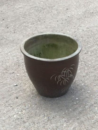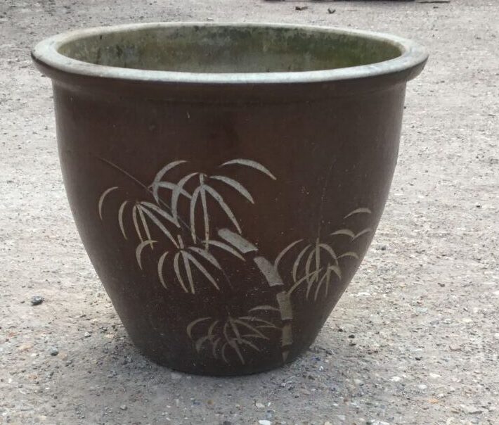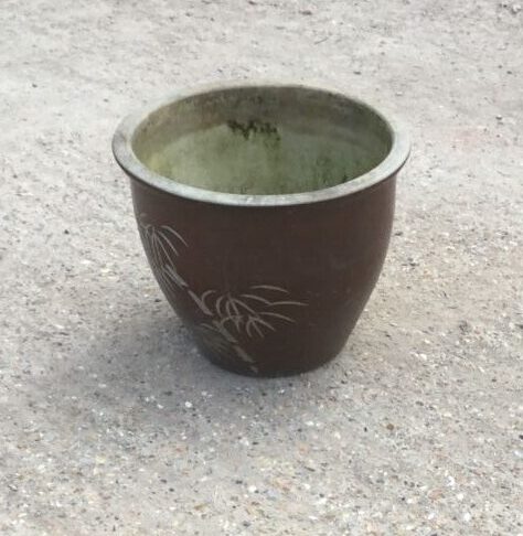 Here we have a Red Plant Pot With Palm Tree Detailing, in stock and available here at our yard at Authentic Reclamation. This Red Plant Pot With Palm Tree Detailing is in good condition.