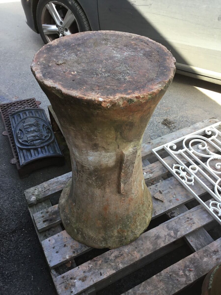 Here we have a Terracotta Pot/Stand. In stock which is well weathered that you can find in our yard at Authentic Reclamation. This Terracotta Pot/Stand Not very sure on what this item was made for but could be adapted for use as a pot, Planter or Stand.
