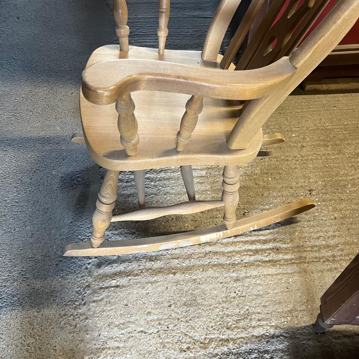 Here we have this Traditional Rocking Chair in stock and on display in our showroom area here at Authentic Reclamation. This traditional rocking chair is in good condition with some minor scuffing along the base, which can be seen in the images. This beautifully crafted traditional rocking chair features turned spindle supports, scrolled arms, and an elegant pierced back splat. If this traditional rocking chair doesn’t interest you, we offer a wide range of furniture throughout our yard which can be viewed online or come in today!