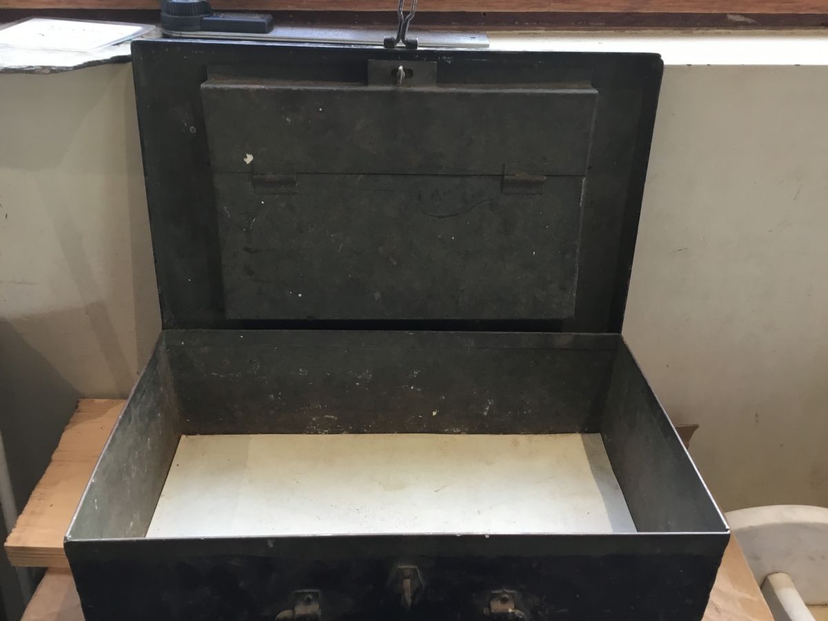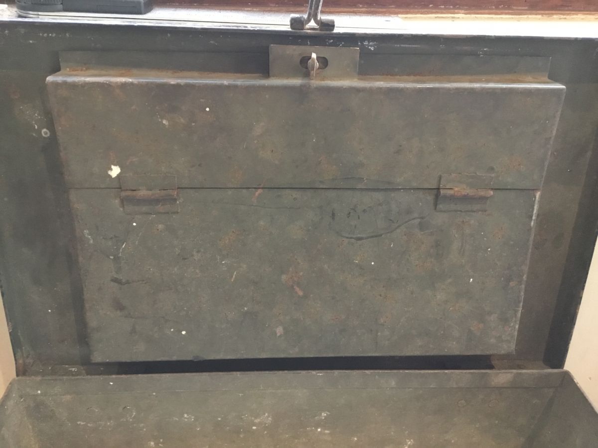 Here we have a Vintage Metal Storage Box which is available and on display in our showroom here at Authentic Reclamation. This is an interesting piece once belonging to a ‘J. H. Rose’, we don’t really know much about this but its an interesting piece of history. It has an internal compartment which looks like it could have been used for letters maybe.