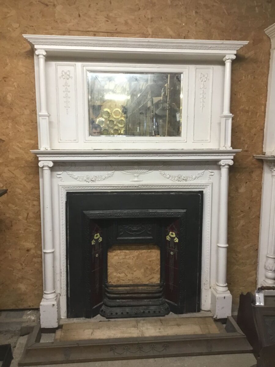 Here we have a White fire Surround With Columns with matching Over Mantle and mirror. on display in our showroom at Authentic Reclamation. We also have a range of furniture in stock so have a browse on our website or come in today to see our extensive showroom. Any damage will be reflected in price and highlighted in pictures.