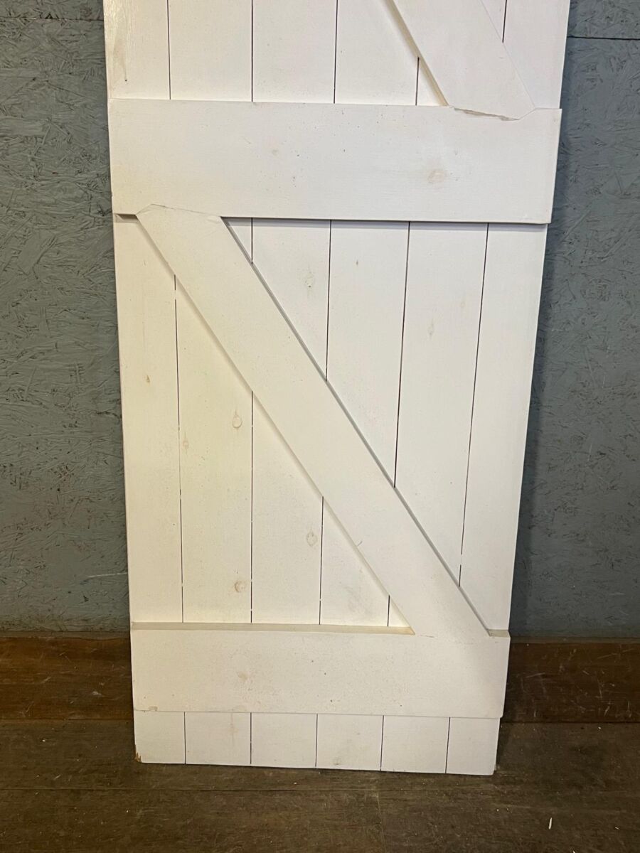 Here we have this White Ledge and Brace Door in stock and on display in our door showroom area here at Authentic Reclamation. This door is in good condition.